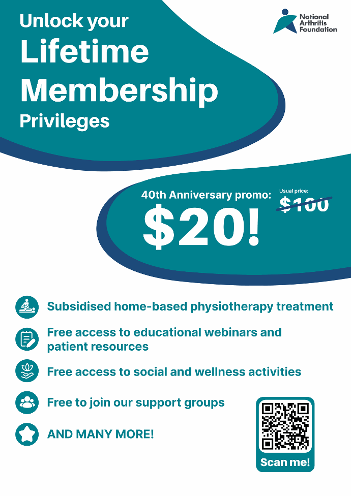 Whether you are someone who’s suffering from arthritis, a caregiver of an arthritis patient, or someone who wishes to learn more about the disease, you can join NAF as a Life Member. Your support as a member will provide the much needed drive for us to do more in the years ahead.